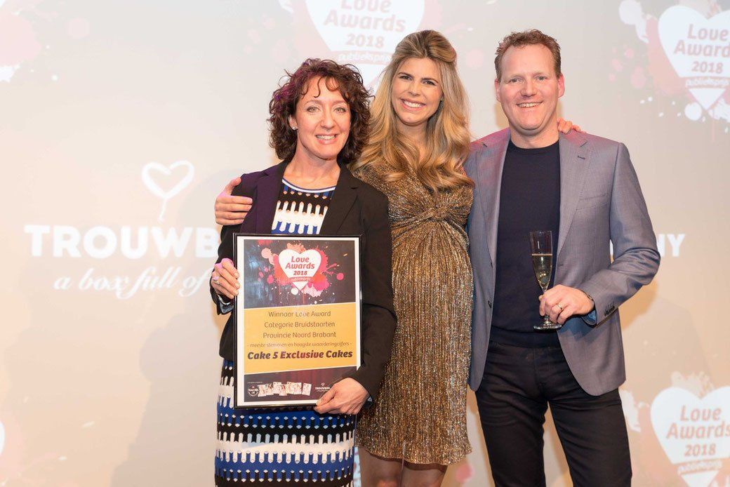 Uit handen van Kim Kotter hebben wij tijdens een feestelijke avond de Love Awards mogen ontvangen in de categorie "Bruidstaarten".