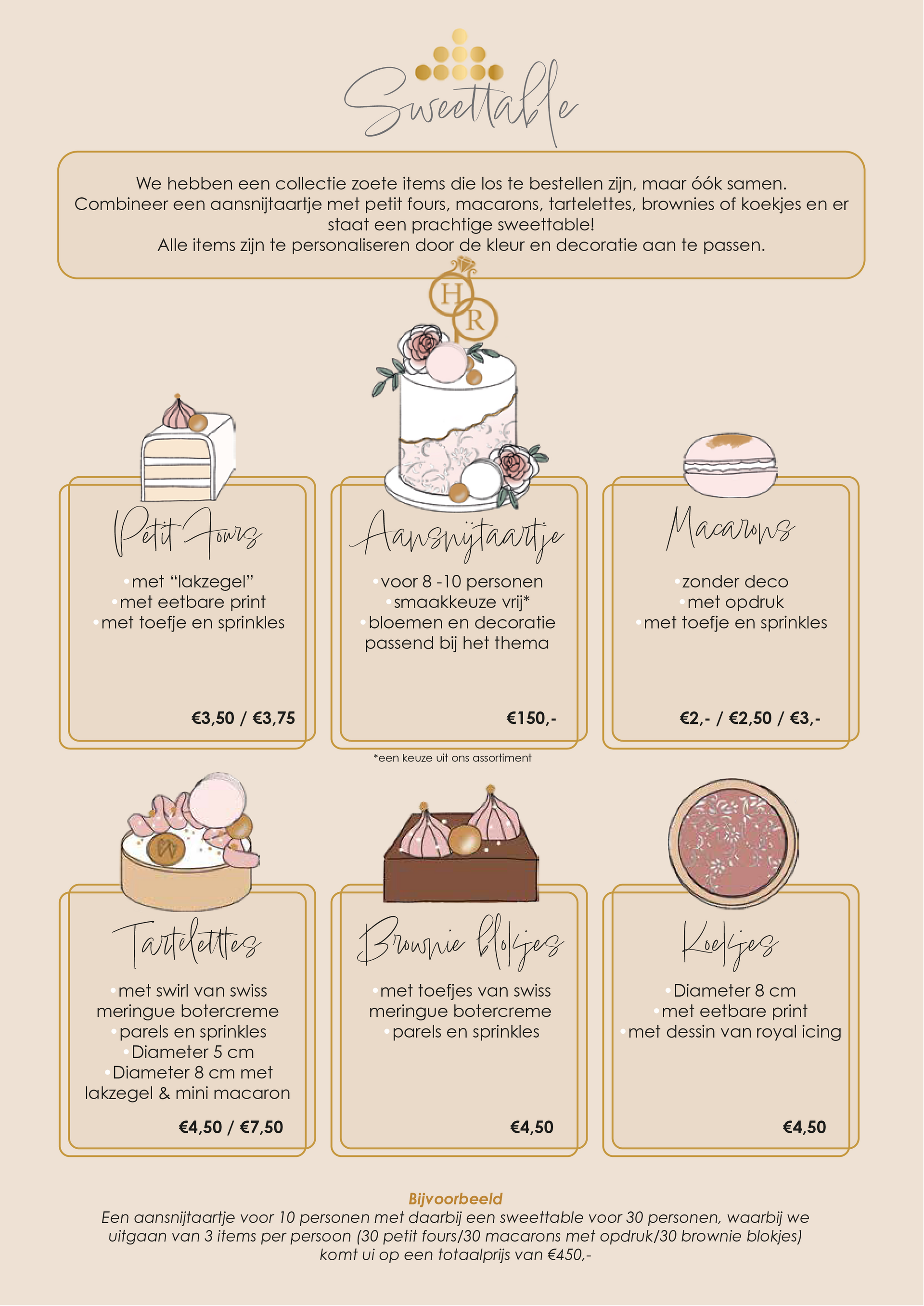 Neem gerust contact met ons op over de mogelijkheden of bekijk ons sweet table prijsoverzicht via deze link: