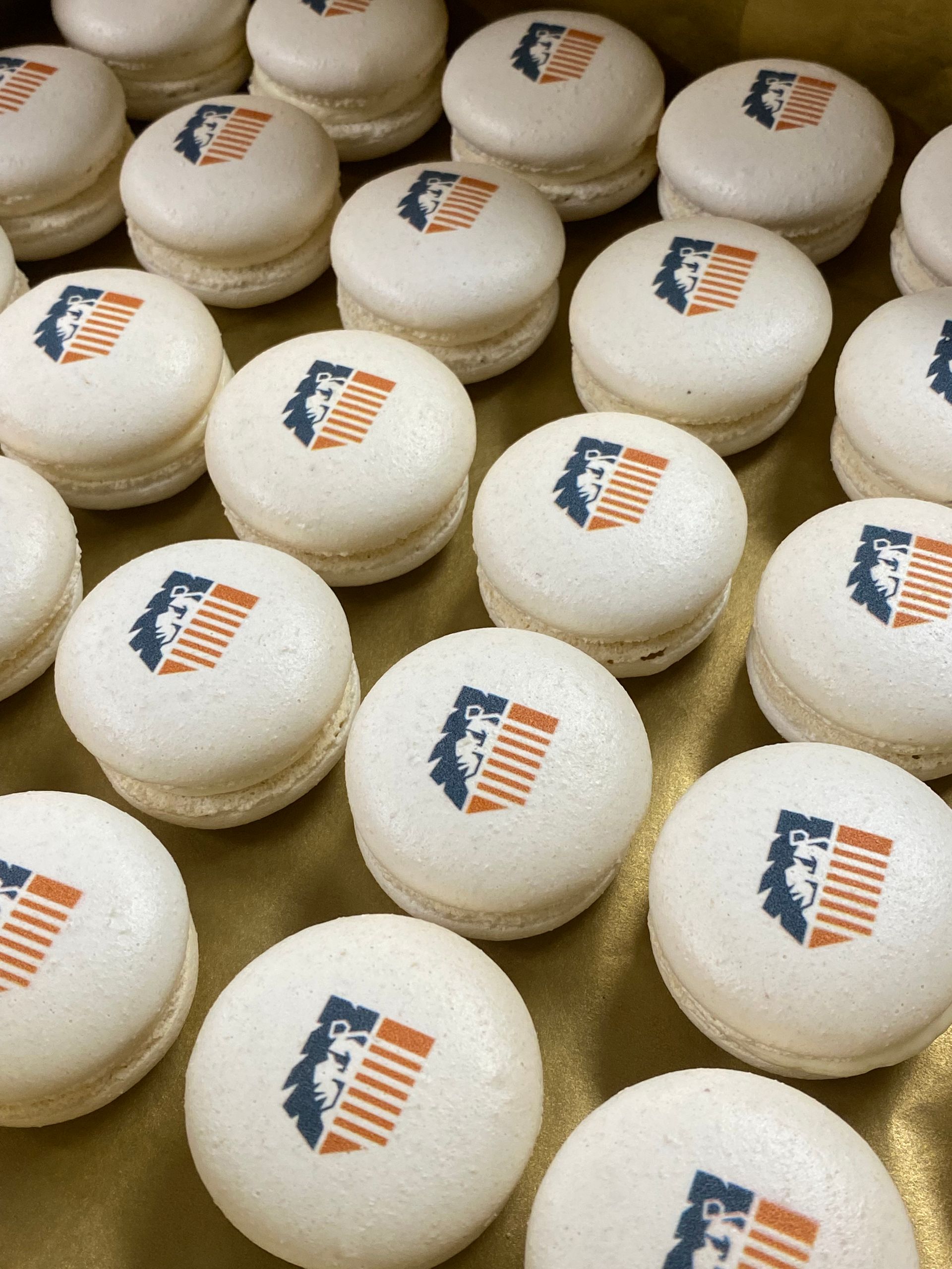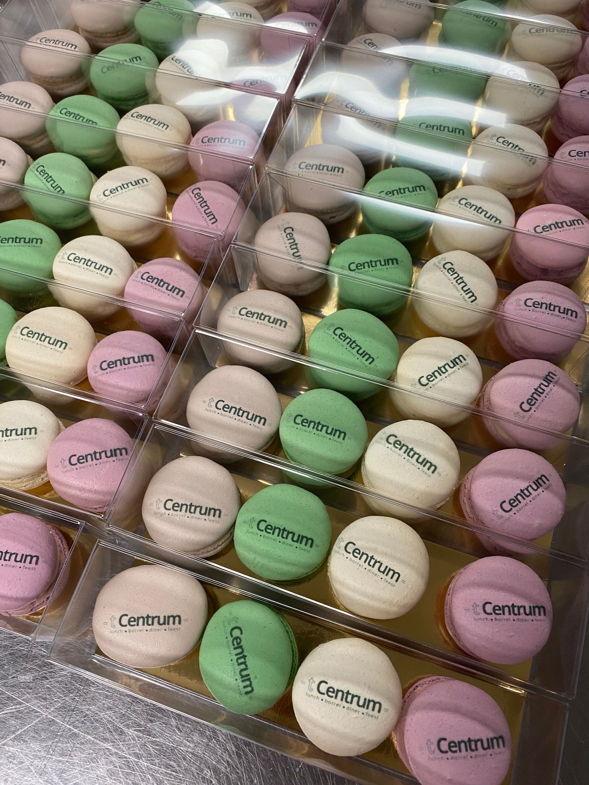 - Signature sweets zoals luxe petit fours of macarons met bedrijfslogo