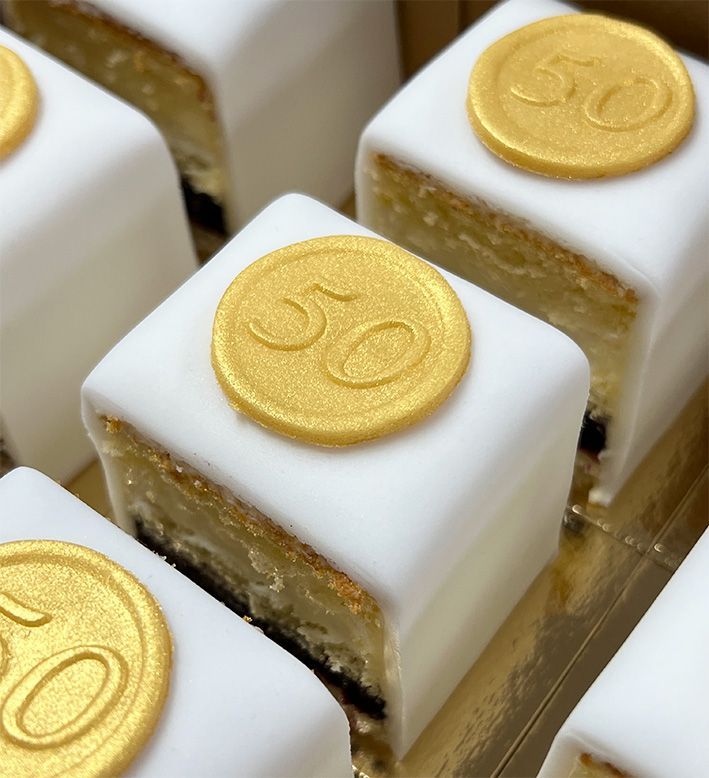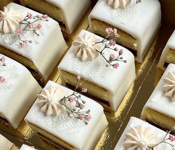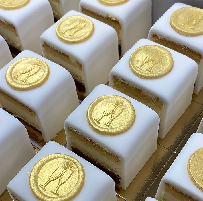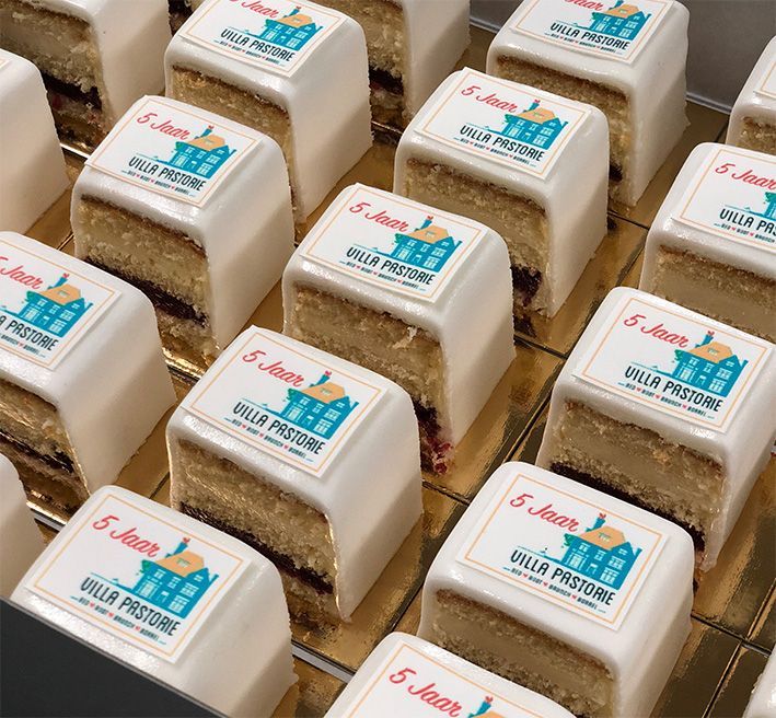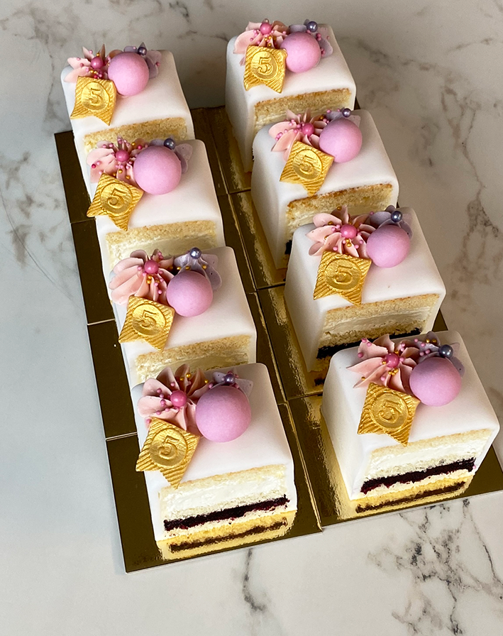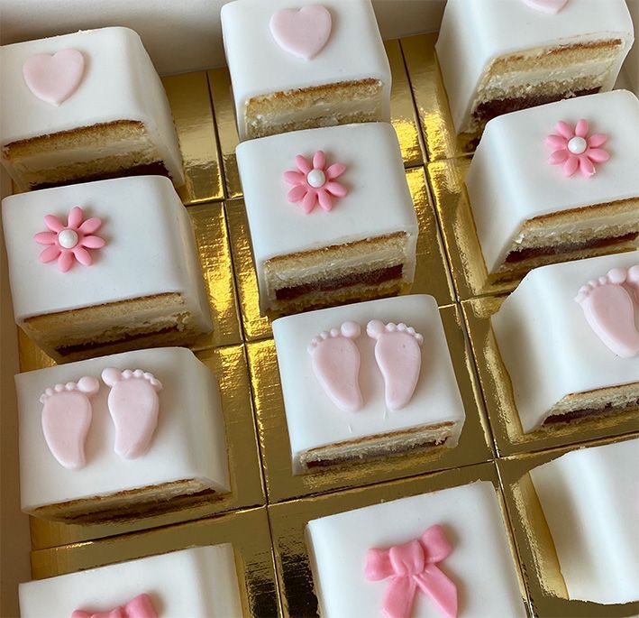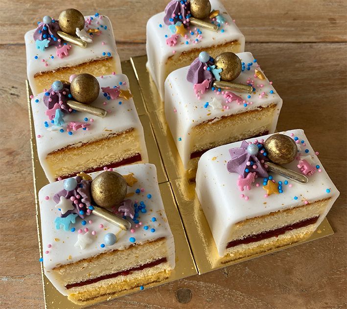 Onze "Cake 5 Petit Fours" zijn een ideale traktatie! Perfect voor bedrijfsfeesten, baby showers, evenementen, jubileums, verjaardagen….. Ze zien er stijlvol uit en zijn aan te passen aan iedere gelegenheid.