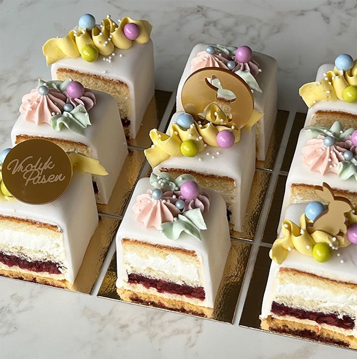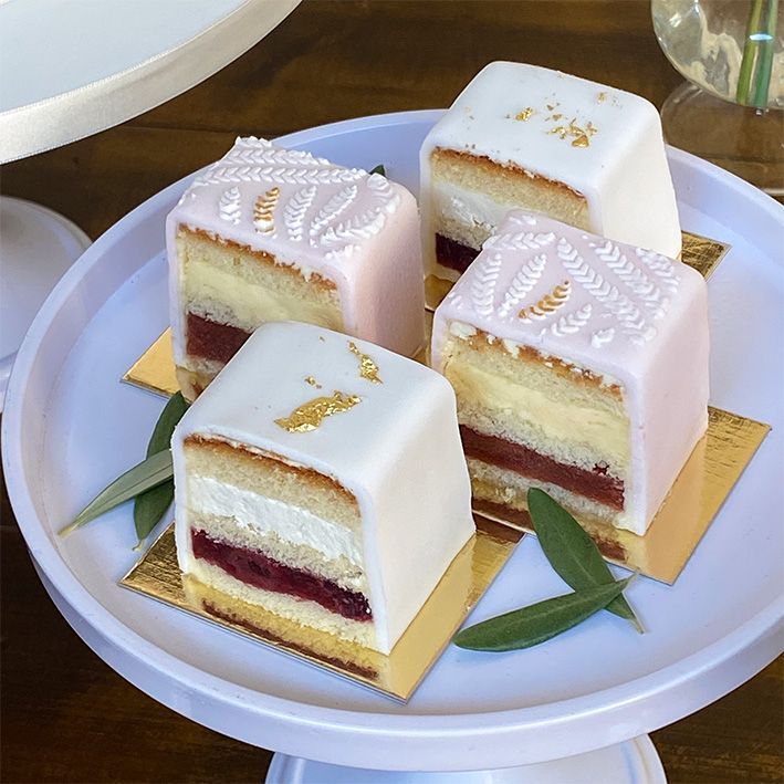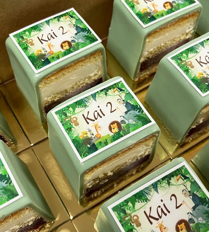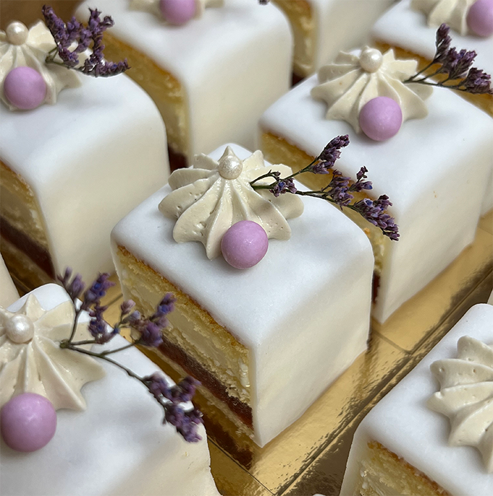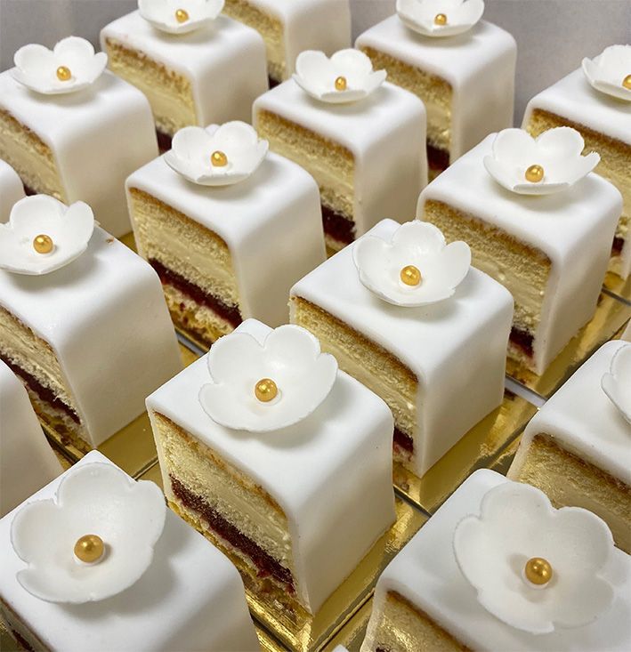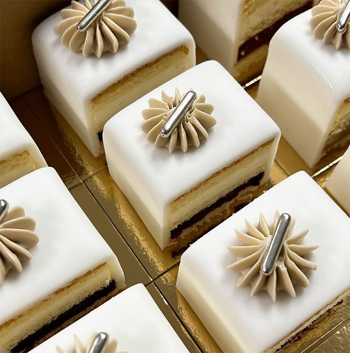 Onze "Cake 5 Petit Fours" zijn een ideale traktatie! Perfect voor bedrijfsfeesten, baby showers, evenementen, jubileums, verjaardagen….. Ze zien er stijlvol uit en zijn aan te passen aan iedere gelegenheid.