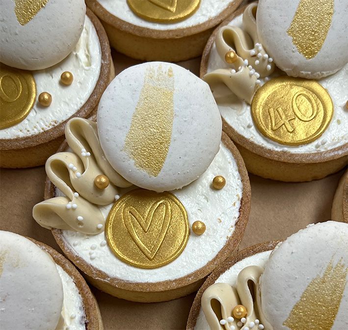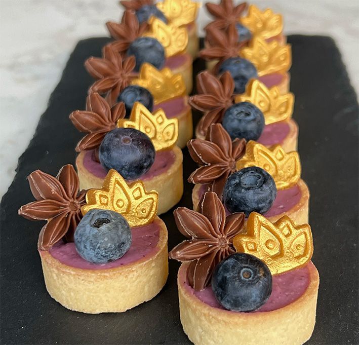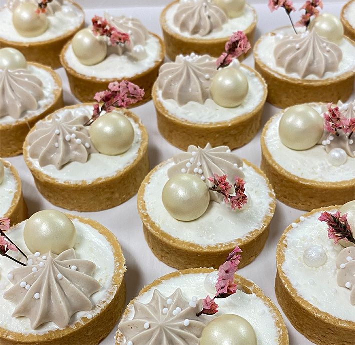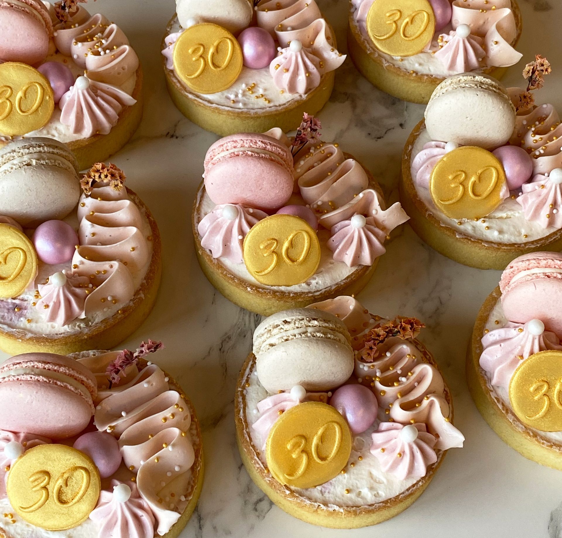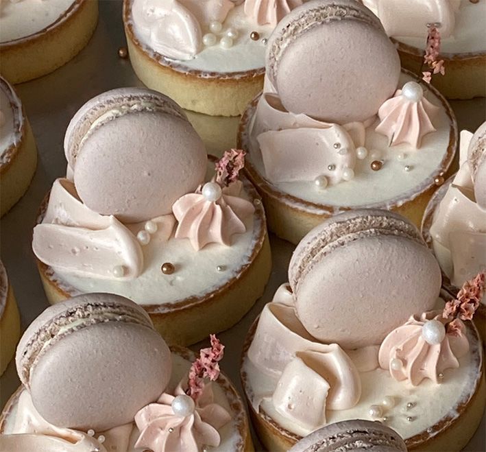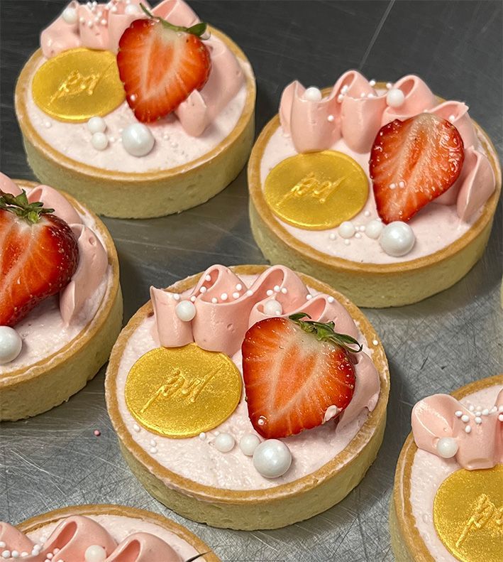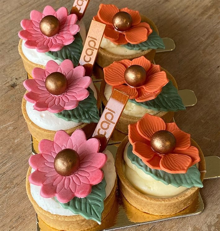 Favoriet is witte chocolademousse met rood fruit. Ze zijn qua decoratie aan te passen aan de gelegenheid.